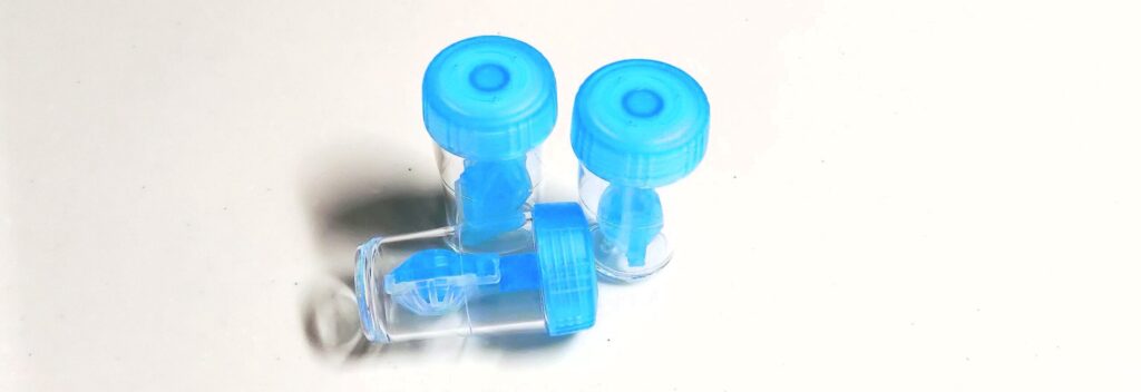消毒液が入ったボトルと、中和錠剤がセットになっているキットに、ご丁寧にこのコンタクトケースが付属しているのです。